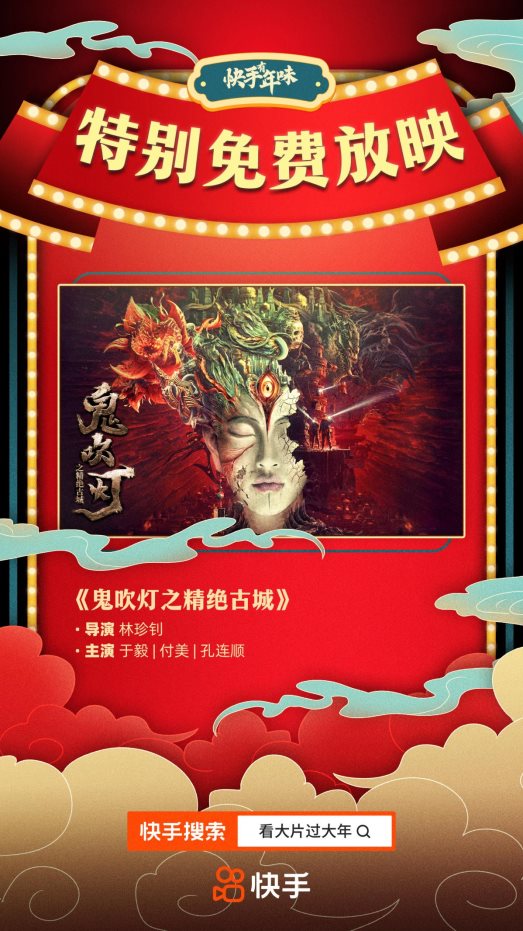 此外,鬼吹灯宇宙电影新作——《鬼吹灯之精绝古城》也将在快手特别免费放映,且看摸金校尉铁三角如何征服冒险之旅吧!