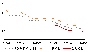 三是继续降低实体经济融资成本。今年以来,人民银行持续加大逆周期调控力度,连续两次调降逆回购、MLF利率,LPR也连续下调,带动信贷利率下行。2023年9月末,金融机构贷款加权利率为4.14%。其中,企业贷款利率为3.82%,为历史新低,比年初下降了0.15个百分点(图2)。考虑到经济尚处于恢复期,继续降低实体经济融资成本、提振企业经营活力仍是金融工作的重点。为此,本次会议提出,“促进社会综合融资成本稳中有降”,延续了近年来经济工作会议的表述。
