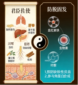 这种由内而外的改变,正是其多靶点起效的证明:从补益肝肾根本,到改善头皮微循环,再到直接营养补给,三重通路协同,为头发构建了一个全方位的“生长生态系统”。
